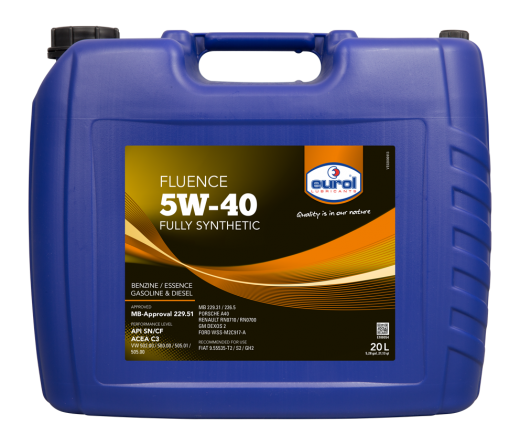 Eurol Fluence 5W-40, wyprodukowany z dodatkami OPT Eurol, oferuje bardzo wysoką ochronę podczas długich okresów między wymianami oleju. Szczególnie polecany do samochodów Euro-4 osobowych Mercedes Benz wymagających stosowania olejów z normą MB 229.51, aby zapobiec blokowaniu filtra sadzy (DPF).